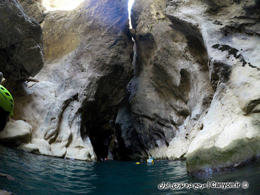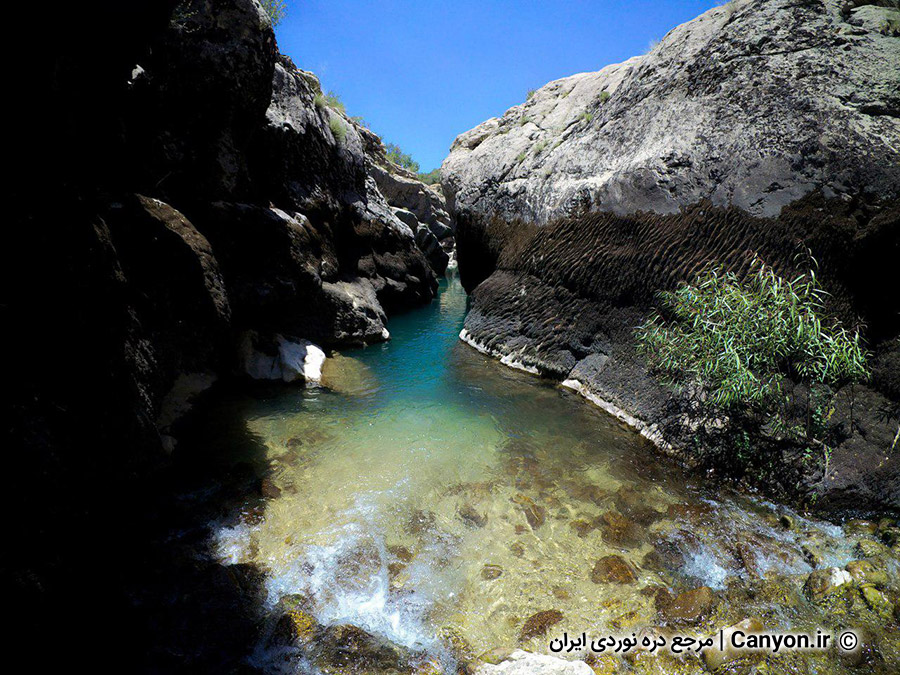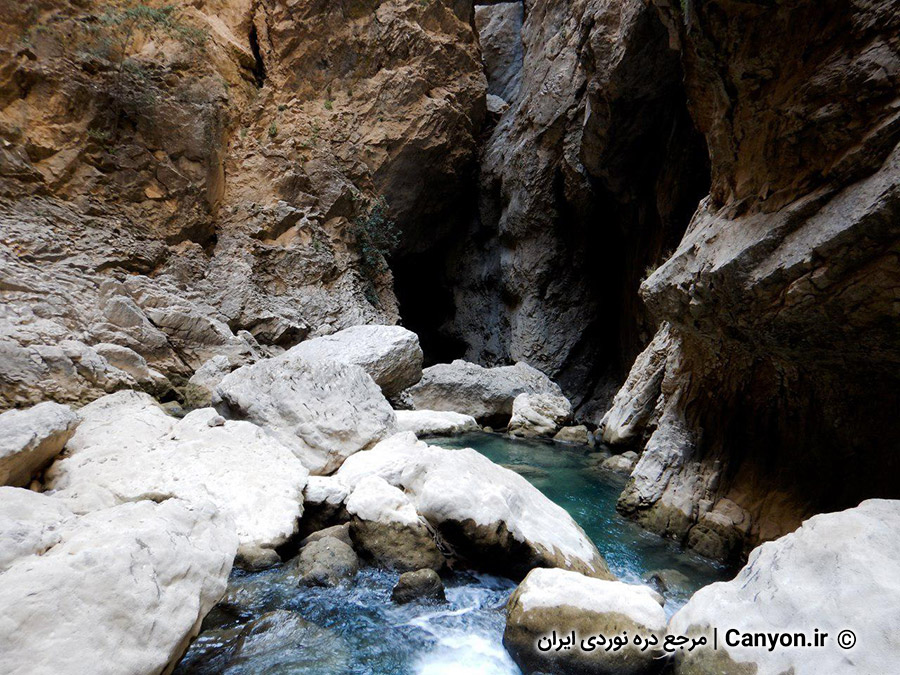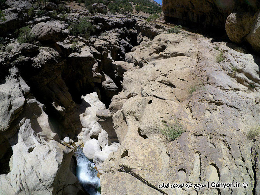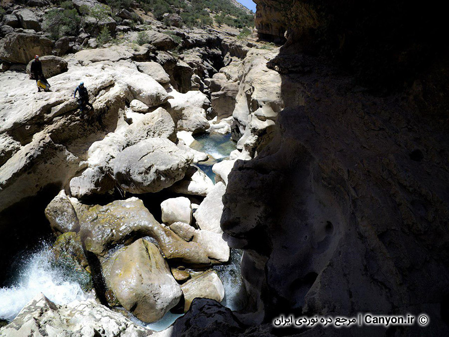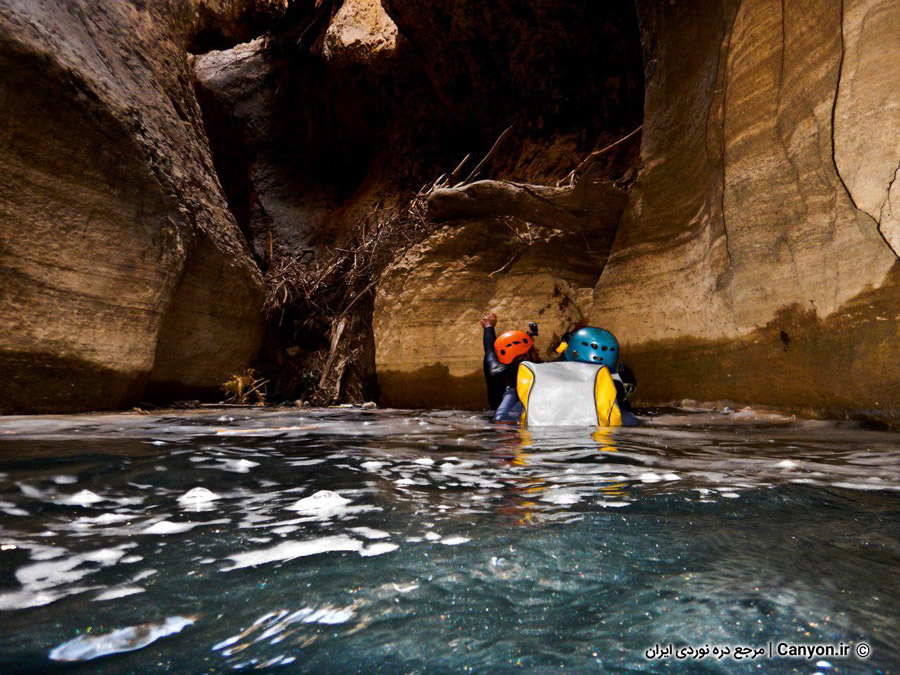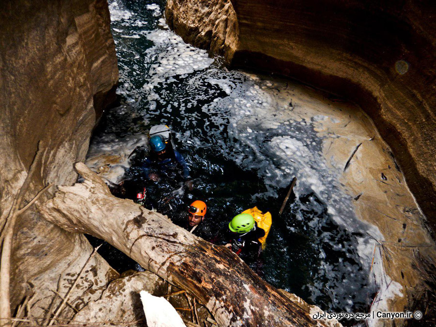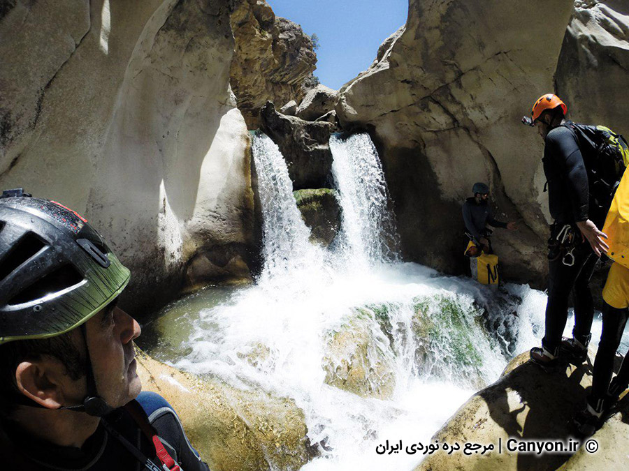 قبل از دره آب رود خانه وارد دره می شود و از همان ابتدا وارد آب می شویم، بستر دره بسیار لغزنده می باشد.