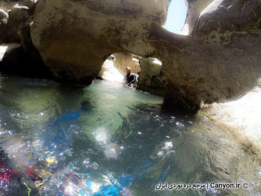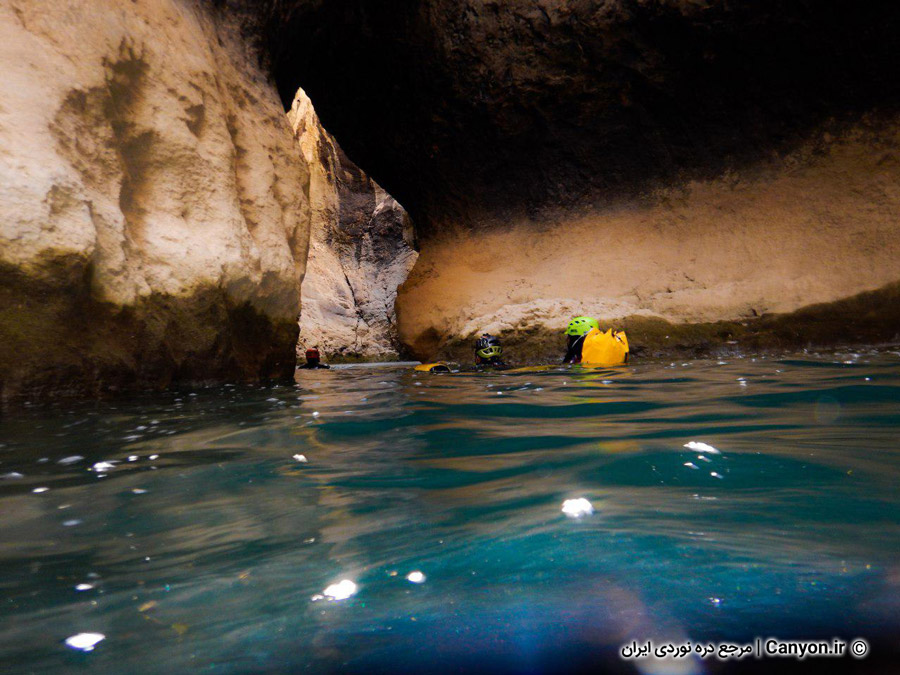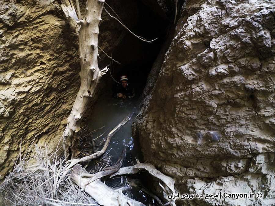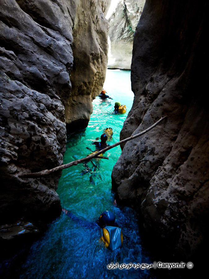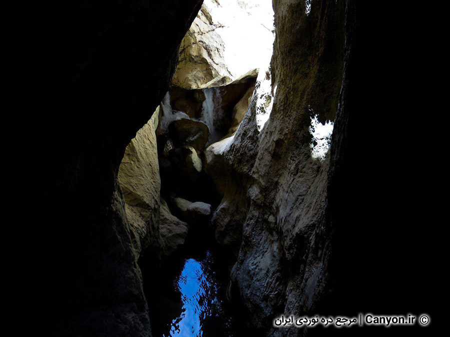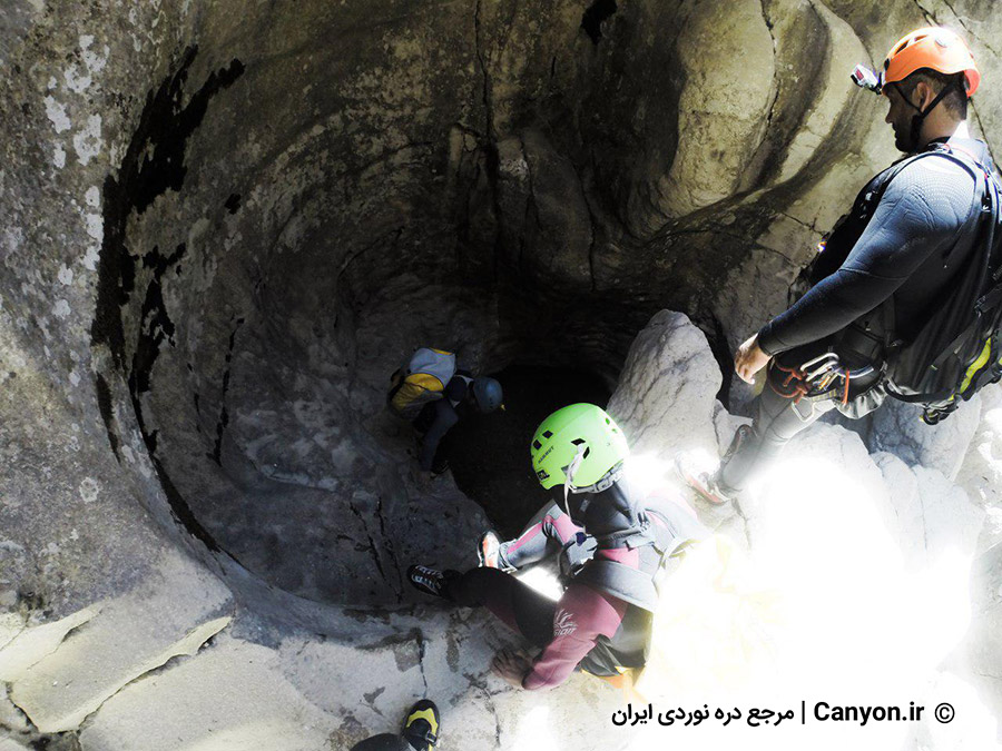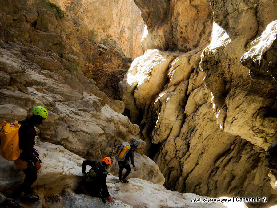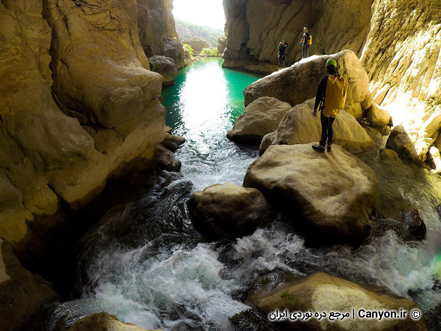 قبل از دره آب رود خانه وارد دره می شود و از همان ابتدا وارد آب می شویم، بستر دره بسیار لغزنده می باشد.