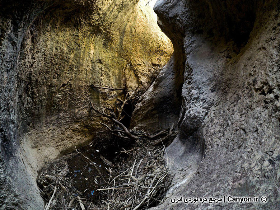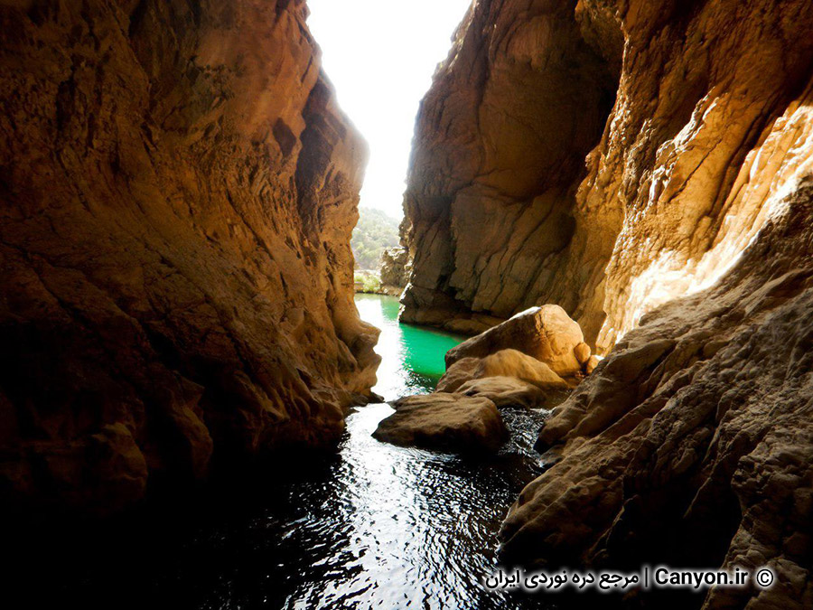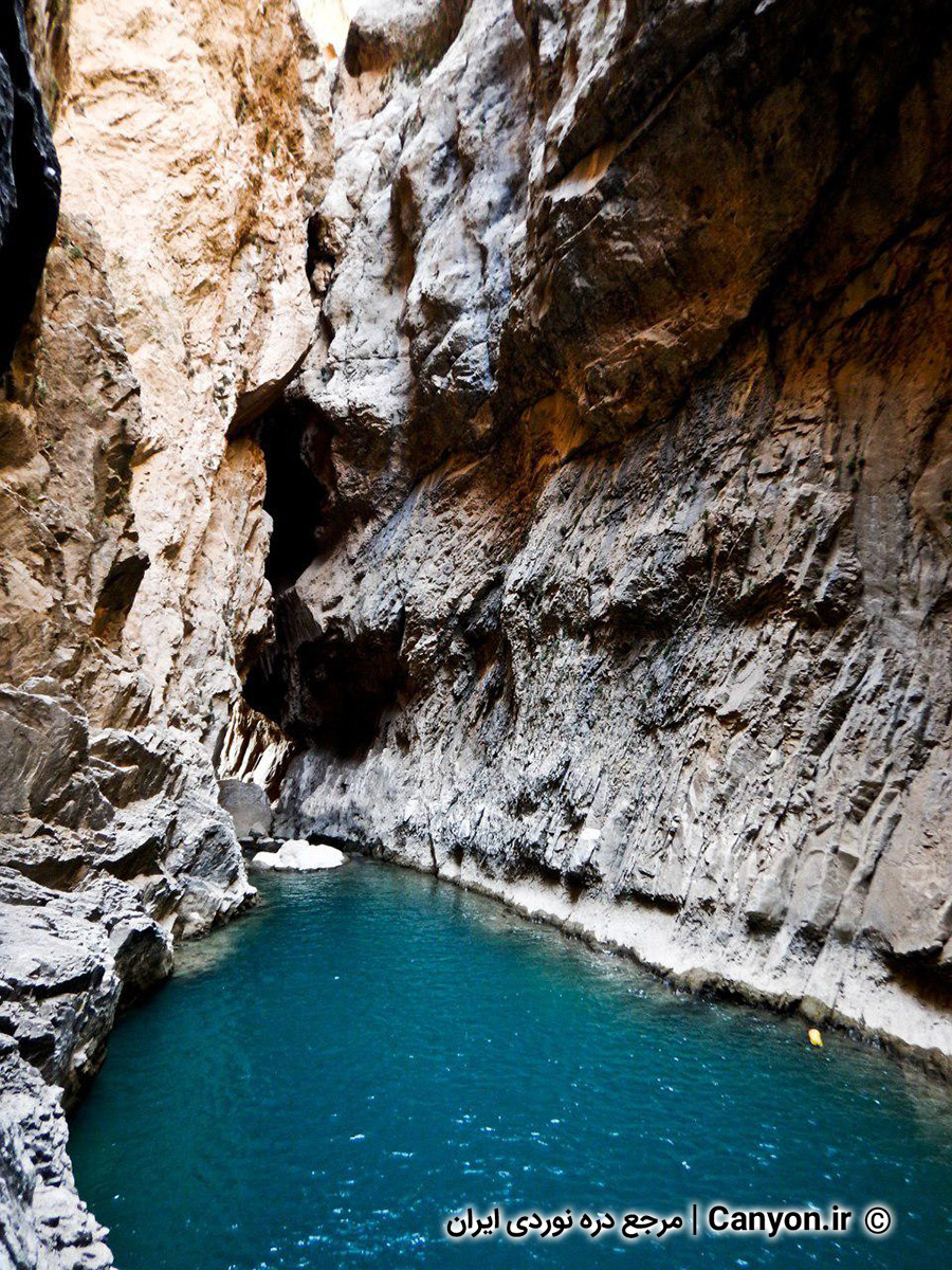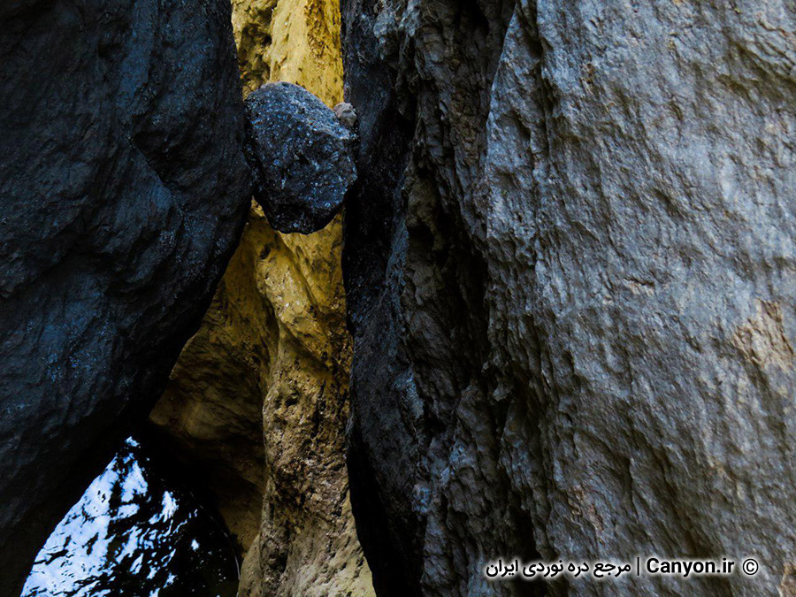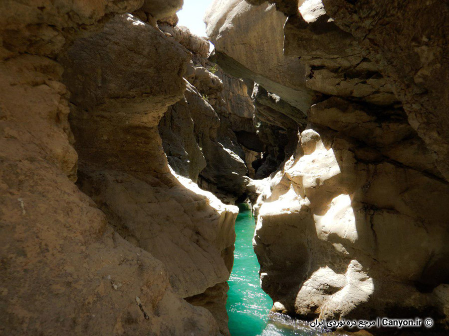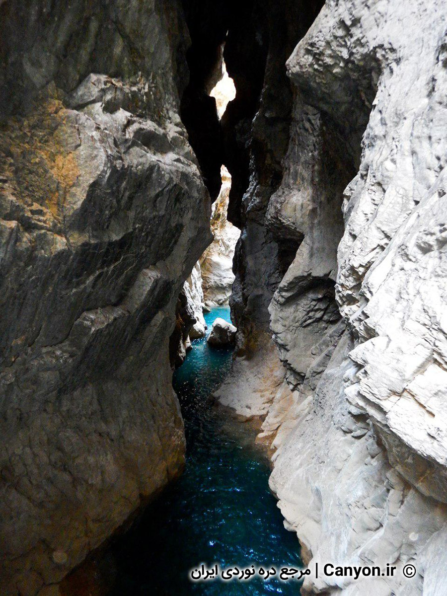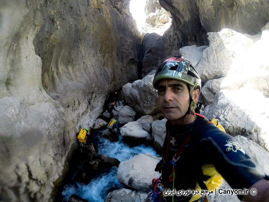 قبل از دره آب رود خانه وارد دره می شود و از همان ابتدا وارد آب می شویم، بستر دره بسیار لغزنده می باشد.