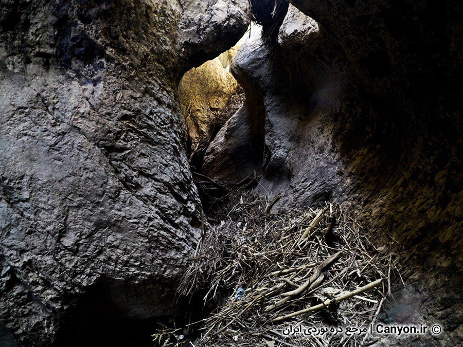 از محل پیاده شدن از ماشین شیب تندی را به سمت پایین می رویم در پایین شیب پرتگاه هایی وجود دارد که با کمی تغییر مسیر به سمت چپ می توان از آنها اجتناب کرد.