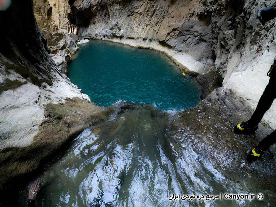 پس از حوضچه از سمت چپ دست به سنگ پایین می رویم در سمت راست نیز آبشاری وجود دارد.در این قسمت درصورت مساعد بودن شرایط یک پرش به طول11.60 متر وجود دارد. اگر شرایط حوضچه مساعد نبود بایستی فرودرفت.