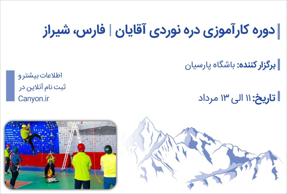 دوره کارآموزی دره نوردی آقایان (فارس-شیراز) 11 الی 13 مرداد